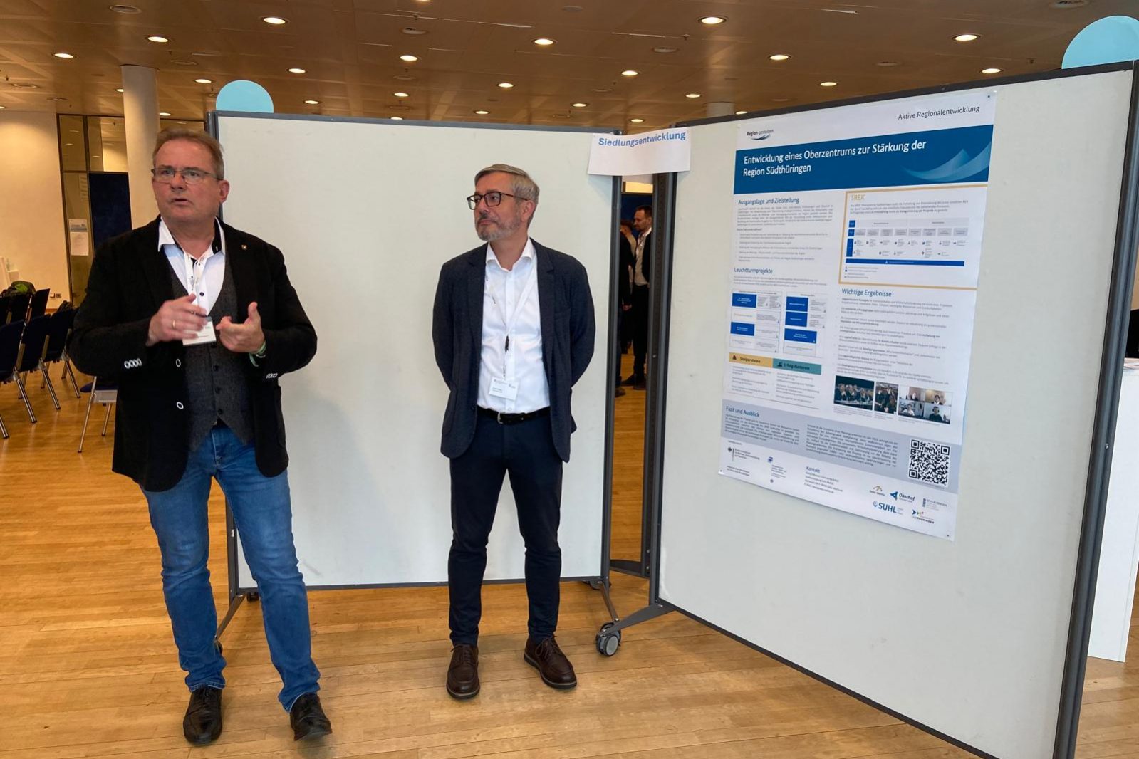 Für die KAG ist das vorrangige Leitprojekt die gemeinsame Wirtschaftsförderung. In ihre zukünftige Arbeit fließen zum Beispiel das während der Projektlaufzeit erstellte Gewerbeflächenentwicklungskonzept und das Innovationskonzept ein. Die Wichtigkeit des Leitprojekts betonten Richard Rossel und sein Kollege, Suhls Oberbürgermeister André Knapp, auch auf dem Bundeskongress. „Eine erfolgreiche Wirtschaft ist die Basis für alle städtischen Vorhaben. Ihr gilt das besondere Augenmerk des künftigen Planungsverbands und seiner Partner.“