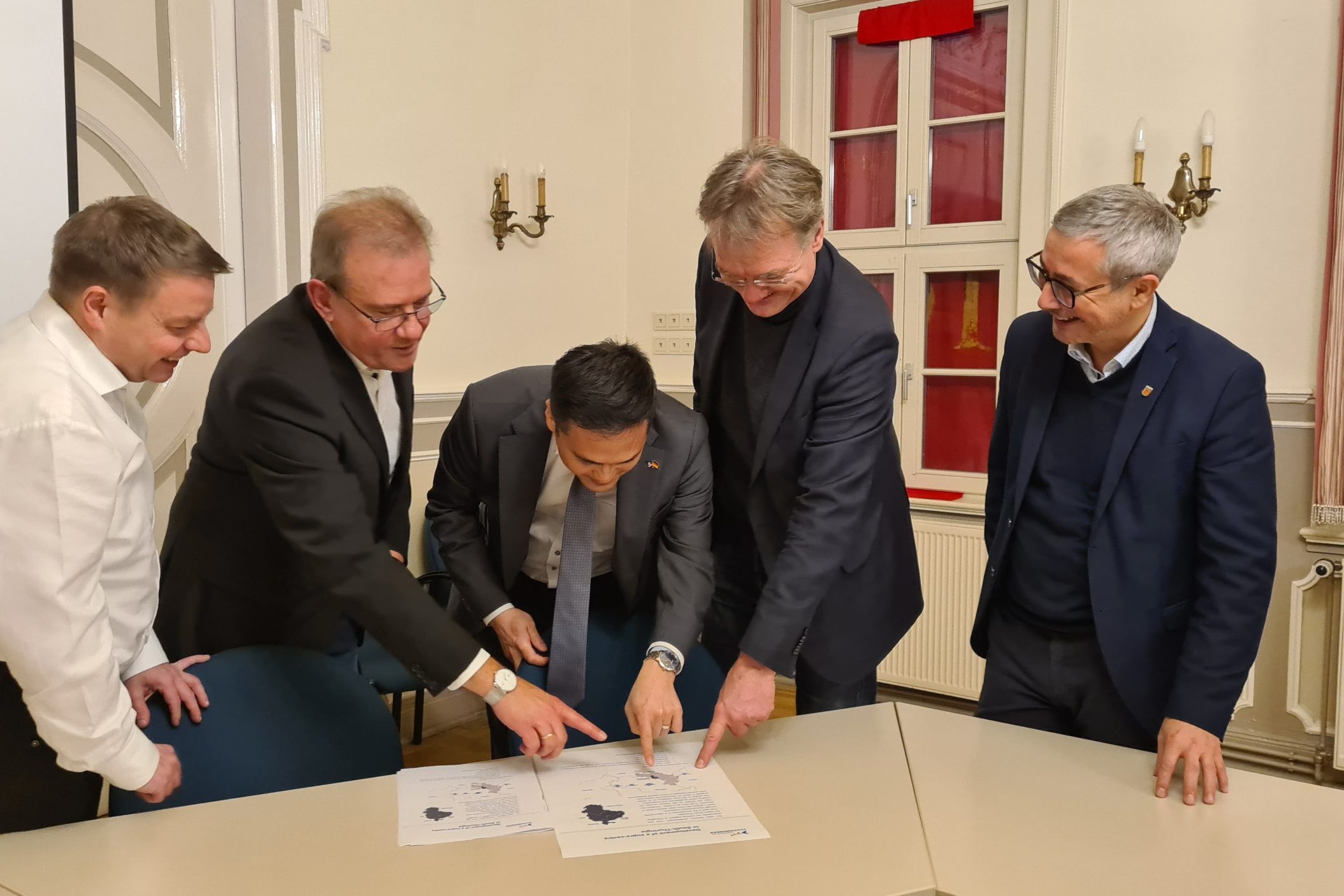 Hoher Besuch im Oberzentrum Südthüringen. Der amerikanische Generalkonsul Ken Toko informierte sich bei den vier Bürgermeistern über das interkommunale Vorzeigeprojekt.