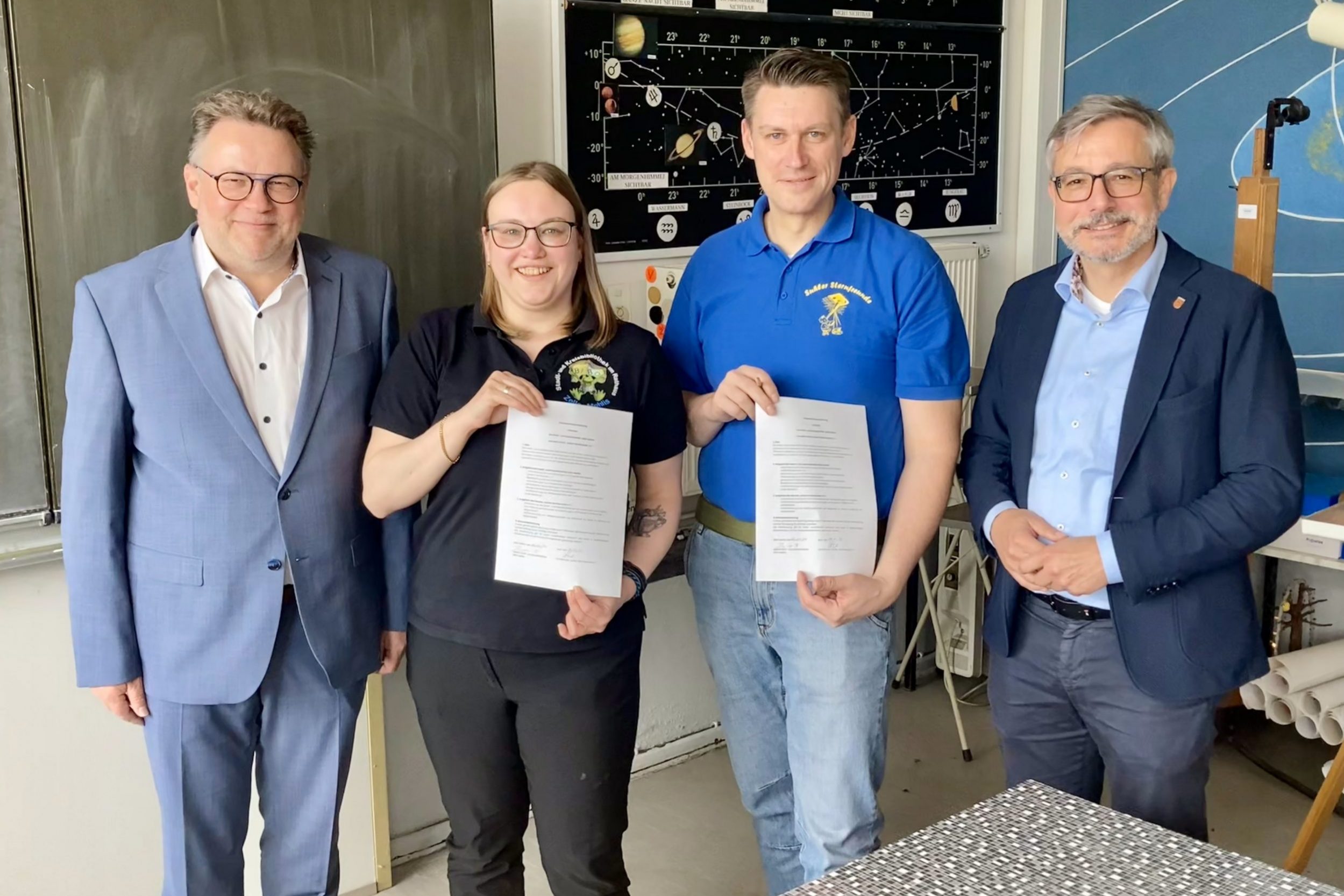 Mit der offiziellen Unterzeichnung eines Kooperationsvertrags haben die Stadt- und Kreisbibliothek Zella-Mehlis und der Verein Suhler Sternfreunde e. V. ihre Zusammenarbeit auf eine langfristige Basis gestellt. Ziel ist es, astronomisches Wissen niedrigschwellig, lebendig und generationenübergreifend zu vermitteln – vor allem für Kinder, Jugendliche und Familien. Für die Kommunale Arbeitsgemeinschaft (KAG) für ein Oberzentrum Südthüringen ist dies ein weiteres gelungenes Beispiel dafür, wie regionale Bildungsakteure gemeinsam attraktive Angebote schaffen. Die feierliche Unterzeichnung fand in der traditionsreichen Schul- und Volkssternwarte „K. E. Ziolkowski“ in Suhl statt.