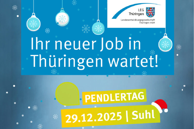 Gemeinsam mit der LEG Thüringen, der IHK Südthüringen und der Agentur für Arbeit Thüringen Südwest beraten die Kollegen aus der Karriereheimat am 29. Dezember Pendler sowie Rückkehrer im Congress Center Suhl beim „Pendler- und Rückkehrer-Tag“. Parallel stehen Interessierten auch die Berater der Thüringer Agentur für Fachkräfteentwicklung online zur Verfügung und informieren über passende Stellenangebote aus…