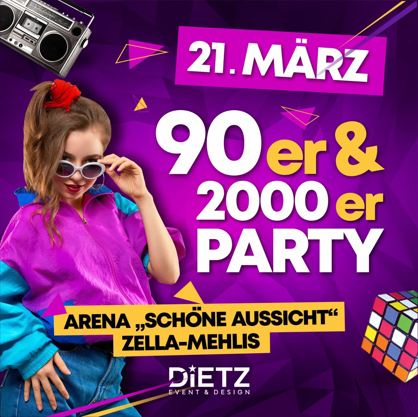 Da euer Interesse an unserer 90er-/2000er-Party jedes Mal so groß war, dass wir einige von euch leider nicht mehr in den Gagarin-Saal lassen konnten, wagen wir jetzt den nächsten Schritt: Dieses Mal feiern wir in der Arena „Schöne Aussicht“ in Zella-Mehlis!