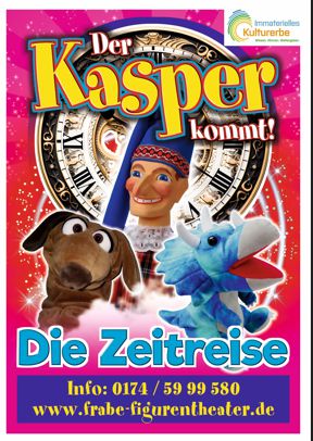Das frabe-figurentheater lädt zu einem außergewöhnlichen Abenteuer ein: „Die Zeitreise“. Kasper, Seppel und ihr treuer Hund Flocki entdecken eine magische Uhr, die sie in die Welt der Dinosaurier befördert. Dort treffen sie auf Poldi, einen freundlichen Dino, der ihre Hilfe braucht! Gemeinsam erleben sie spannende und lustige Momente. Doch am Ende werden sie den Weg zurück in ihre eigene Zeit finden.