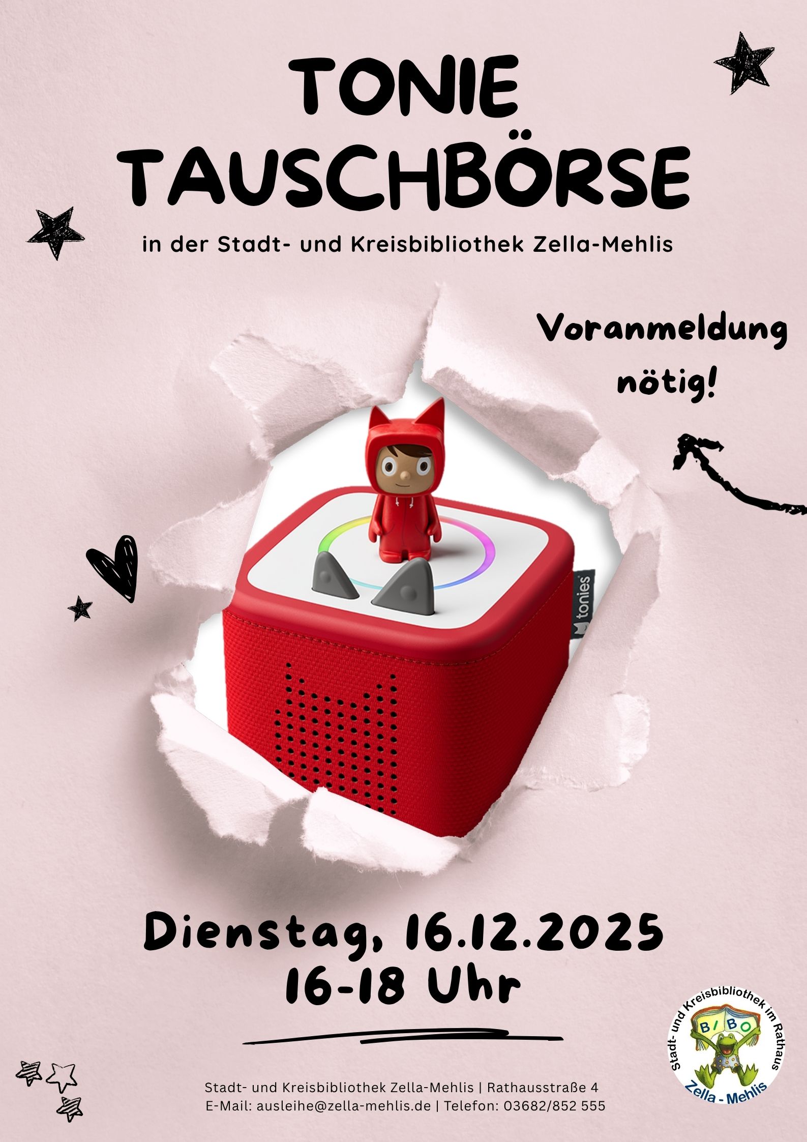 Dann kommen Sie zur großen Tonie-Tauschbörse in der Stadt- und Kreisbibliothek Zella-Mehlis!