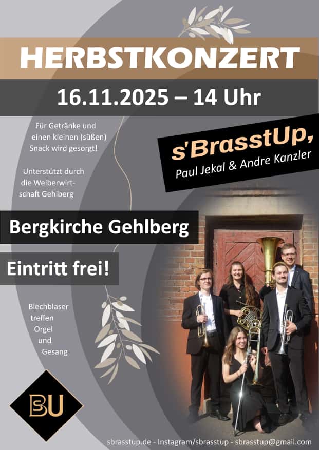 S’BrasstUp lädt Sie herzlich zum Herbstkonzert in der Bergkirche Gehlberg ein!