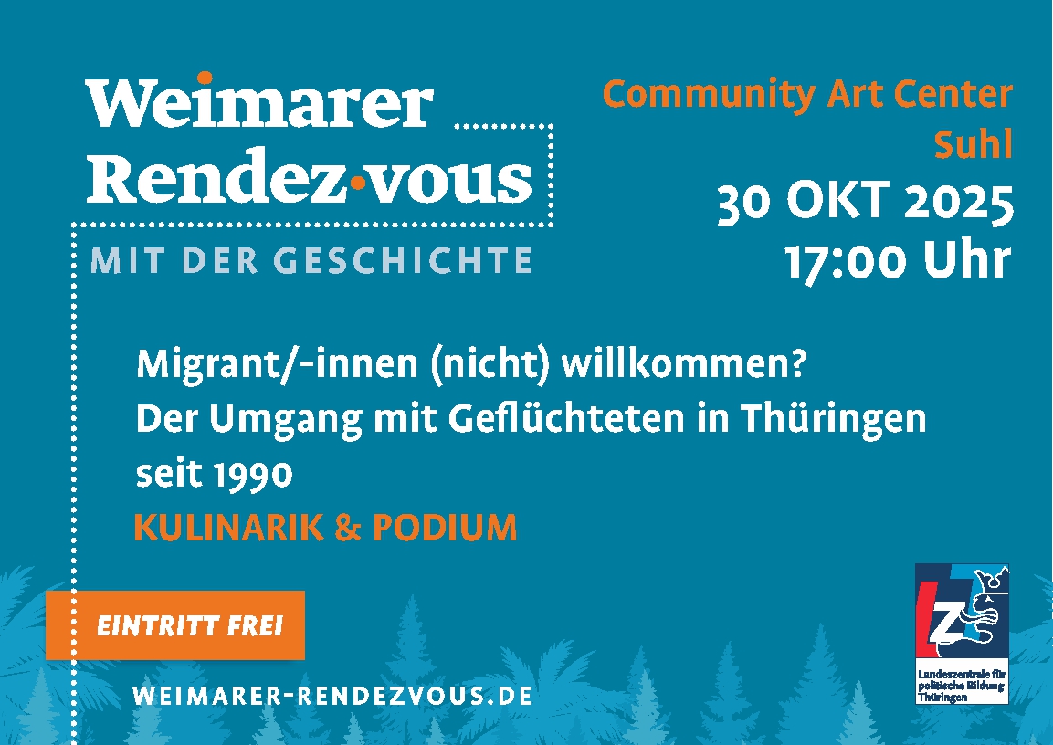 Eine Veranstaltung des Weimarer Rendez-vous mit der Geschichte und der Thüringer Landeszentrale für politische Bildung, in Kooperation mit dem Community Art Center Suhl und Lantern e.V.