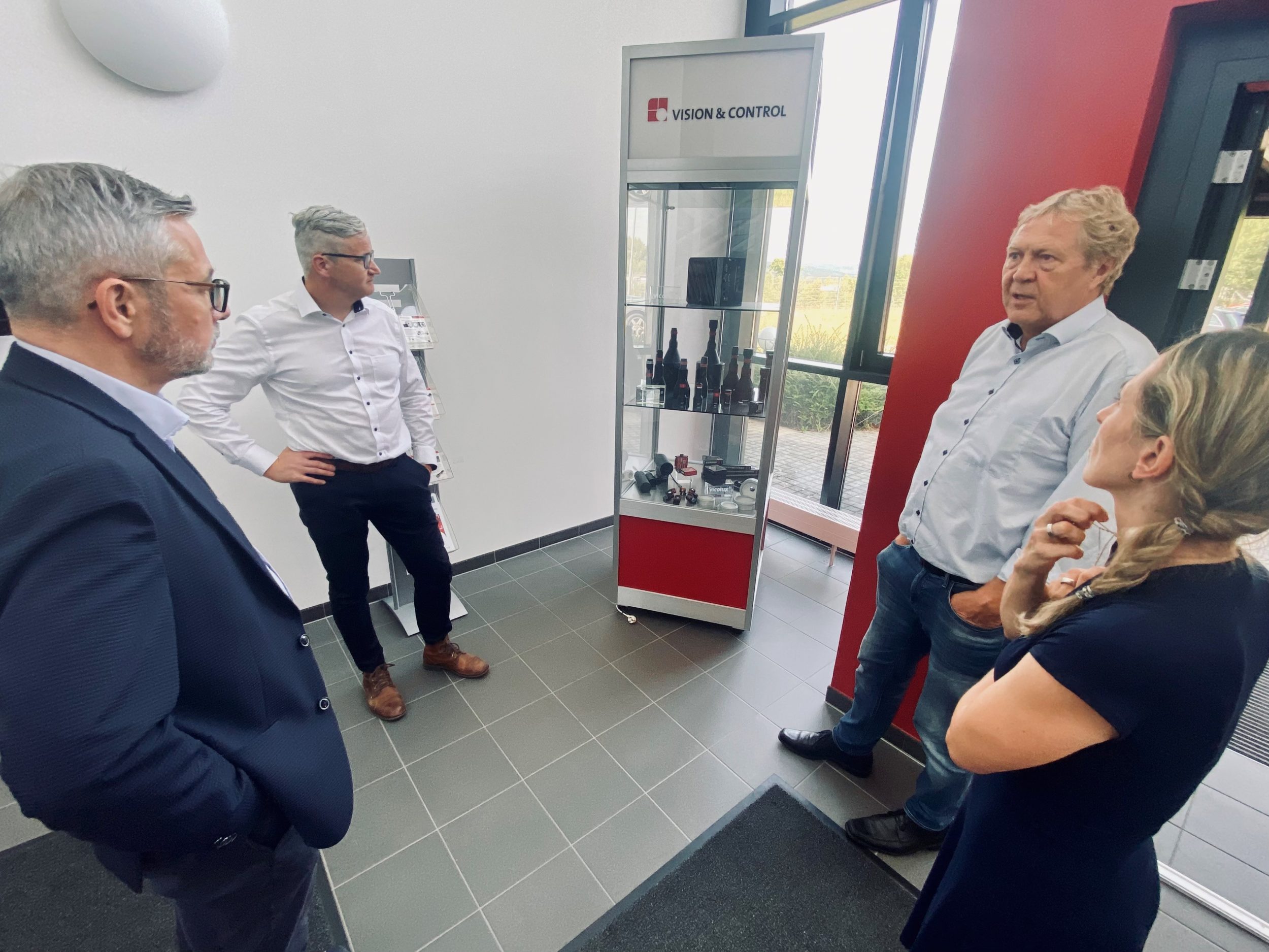 Mit photonikbasierten Messsystemen setzt das Unternehmen Vision & Control aus Suhl weltweit Maßstäbe. Es unterstützt mit seinen Lösungen führende Unternehmen in Branchen wie Messtechnik, Halbleiter, Glasprüfung, Medizintechnik, Automation und Laseranwendungen. Bei dem Besuch der Arbeitsgruppe Wirtschaftsförderung der Kommunalen Arbeitsgemeinschaft (KAG) Oberzentrum Südthüringen wurden Unterstützungsbedarfe aufgenommen und Ansätze für die weiterführende Zusammenarbeit ausgelotet.