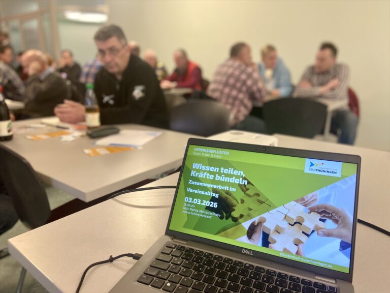 Unter dem Motto „Wissen teilen, Kräfte bündeln – Zusammenarbeit im Vereinsalltag“ trafen sich über 50 Vertreterinnen und Vertreter von 40 Vereinen aus allen vier Städten der Kommunalen Arbeitsgemeinschaft (KAG) Oberzentrum Südthüringen zum Vereinsgeflüster in der Mehrzweckhalle „Arena Schöne Aussicht“ in Zella-Mehlis. Ziel des ersten Geflüsters…