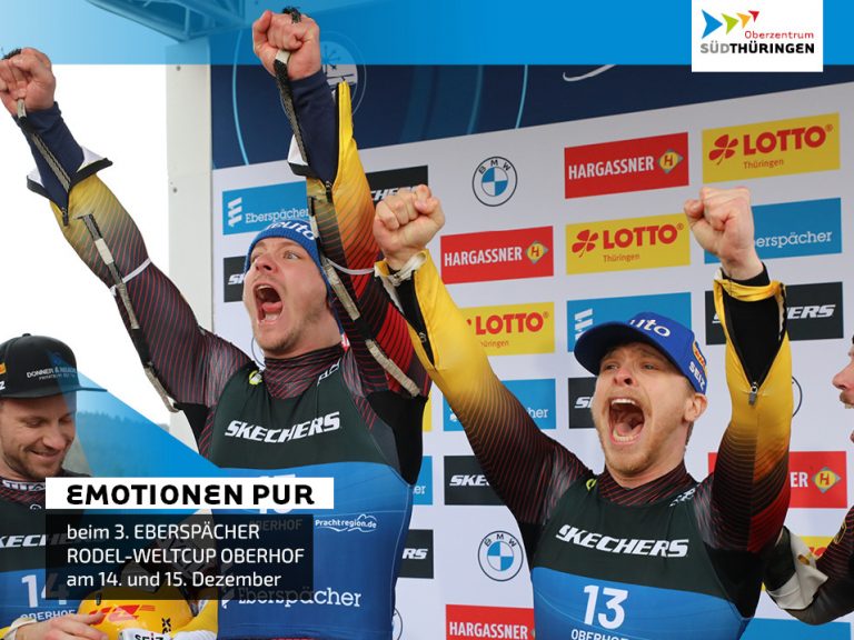 Ende Januar wird das Oberzentrum Südthüringen erneut zum Zentrum des Wintersports: Vom 25. bis 26. Januar trifft sich die internationale Rodel-Elite beim EBERSPÄCHER Rodelweltcup in der renommierten LOTTO Thüringen EISARENA Oberhof. Unter den Teilnehmern: Hannes Orlamünder und Paul Gubitz, Rennrodel-Doppel des Rennrodelclubs Zella-Mehlis und Sieger…