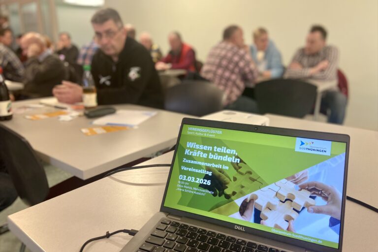 Unter dem Motto „Wissen teilen, Kräfte bündeln – Zusammenarbeit im Vereinsalltag“ trafen sich über 50 Vertreterinnen und Vertreter von 40 Vereinen aus allen vier Städten der Kommunalen Arbeitsgemeinschaft (KAG) Oberzentrum Südthüringen zum Vereinsgeflüster in der Mehrzweckhalle „Arena Schöne Aussicht“ in Zella-Mehlis. Ziel des ersten Geflüsters im neuen Jahr war es, den Austausch zwischen den Vereinen…