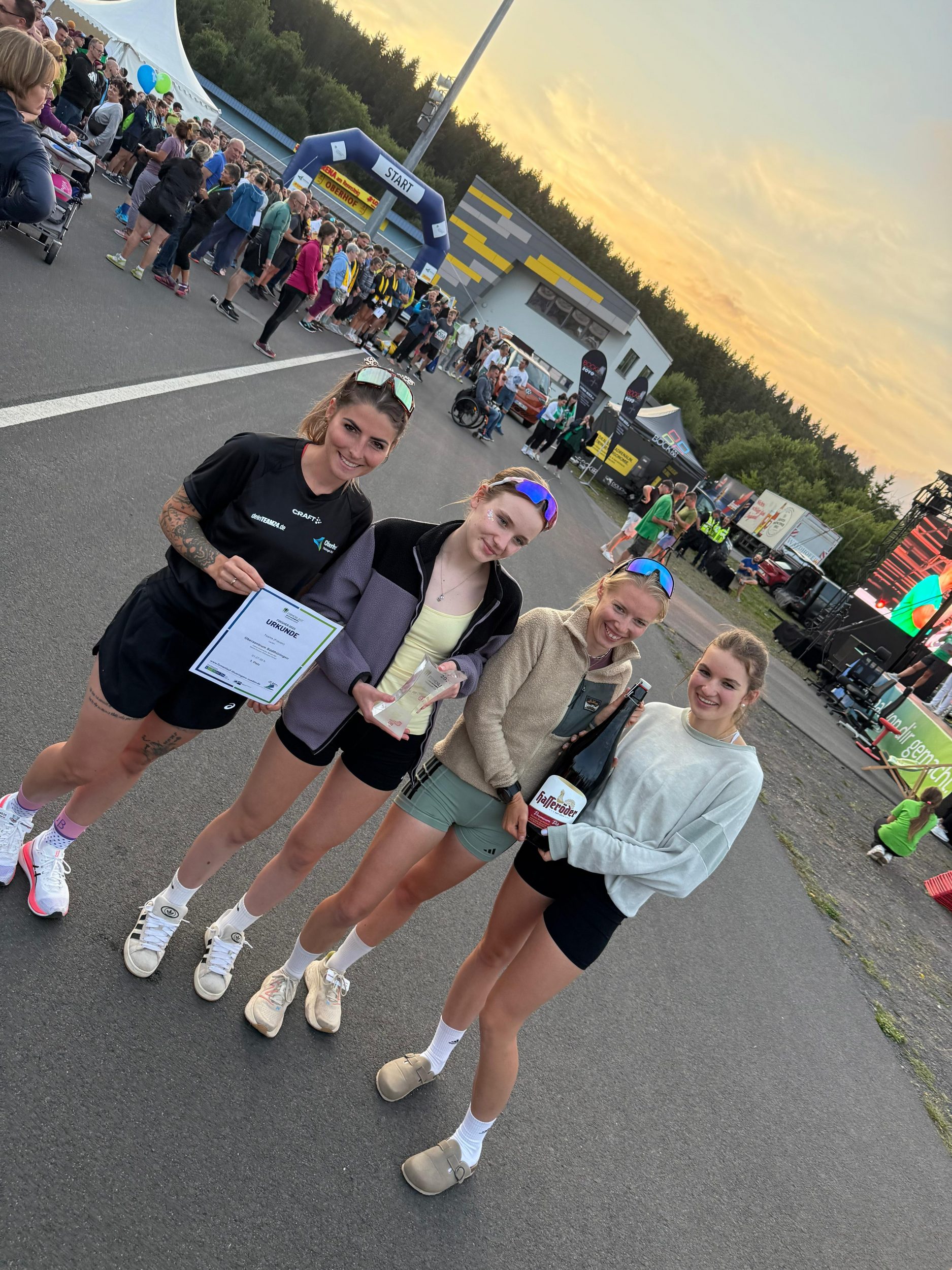 In der Sport-Wertung „Teams (Frauen) Laufen“ erreichte das Team Oberzentrum Südthüringen mit den Läuferinnen Celina Grimmecke, Miriam Allin und Melina Eimann von der SZM Spannwerkzeuge GmbH sowie Charmaine Dünkel von der Tourismus GmbH Oberhof eine Gesamtzeit von 1:27:30 und belegte damit den 3. Platz. Urkunde und Pokal zeigen dabei: Zusammenarbeit zahlt sich aus – sportlich wie organisatorisch. „Die Abendsonne und die wellige Strecke hatten es in sich, aber die Massen auf und an der Strecke tragen einen super ins Ziel. Der Firmenlauf ist einfach anders als andere Läufe. Wenn jeder voller Stolz ins Ziel läuft, macht es einfach Spaß – und der Leistungsgedanke rückt in den Hintergrund,“ beschreibt Charmaine Dünkel ihre Eindrücke.