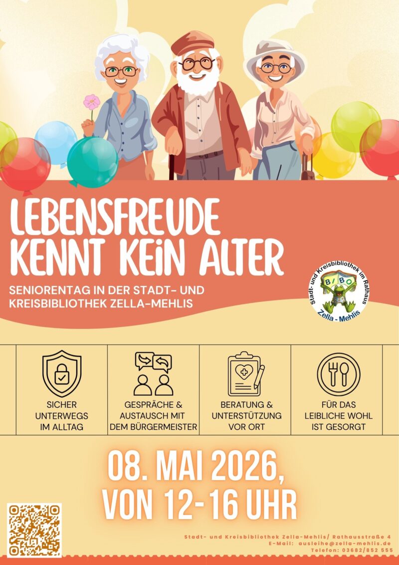Lebensfreude kennt kein Alter! Gemeinsam mit zahlreichen Kooperationspartnern bieten wir im Mai einen Seniorentag unter dem Motto „Lebensfreude kennt kein Alter“ an. An einem Nachmittag erwarten Seniorinnen und Senioren vielfältige Informations- und Unterhaltungsangebote, sowohl in den Räumen der Stadt- und Kreisbibliothek als auch auf dem Rathausvorplatz. Mit dieser Veranstaltung möchten wir insbesondere eine wichtige und…