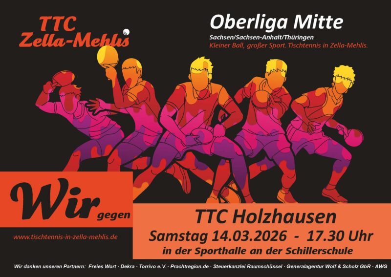 Der Tischtennisclub Zella-Mehlis lädt alle begeisterten Tischtennis-Fans ein, das Heimspiel der Oberliga Mannschaft des TTC Zella-Mehlis zu bestaunen. Kommt vorbei, wenn es in der Sporthalle an der Schillerschule in Zella-Mehlis wieder heißt „Aufschlag zählt“. Für Speisen und Getränke wird gesorgt sein.